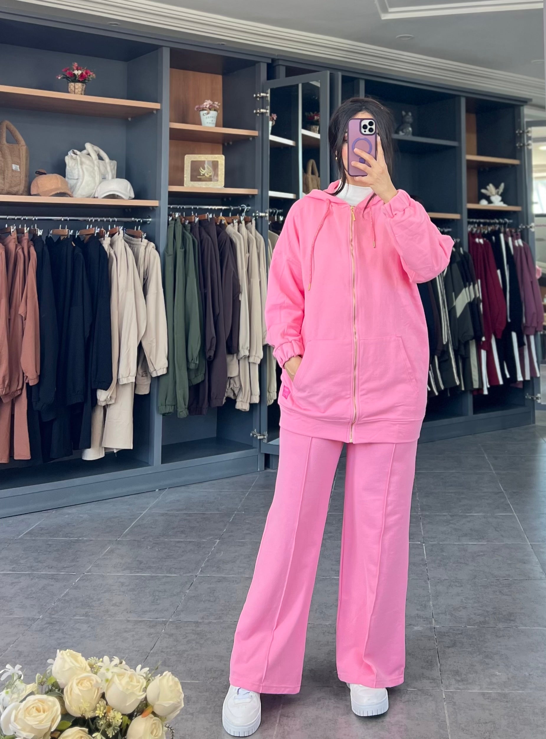 Découvrez Notre Ensemble Deux Pièces Qui Allie Sophistication Et Confort. Composé D’une Veste À Capuche Et D’un Pantalon Assorti, Cet Ensemble Est Parfait Pour Un Look Casual Ou Sportif.
