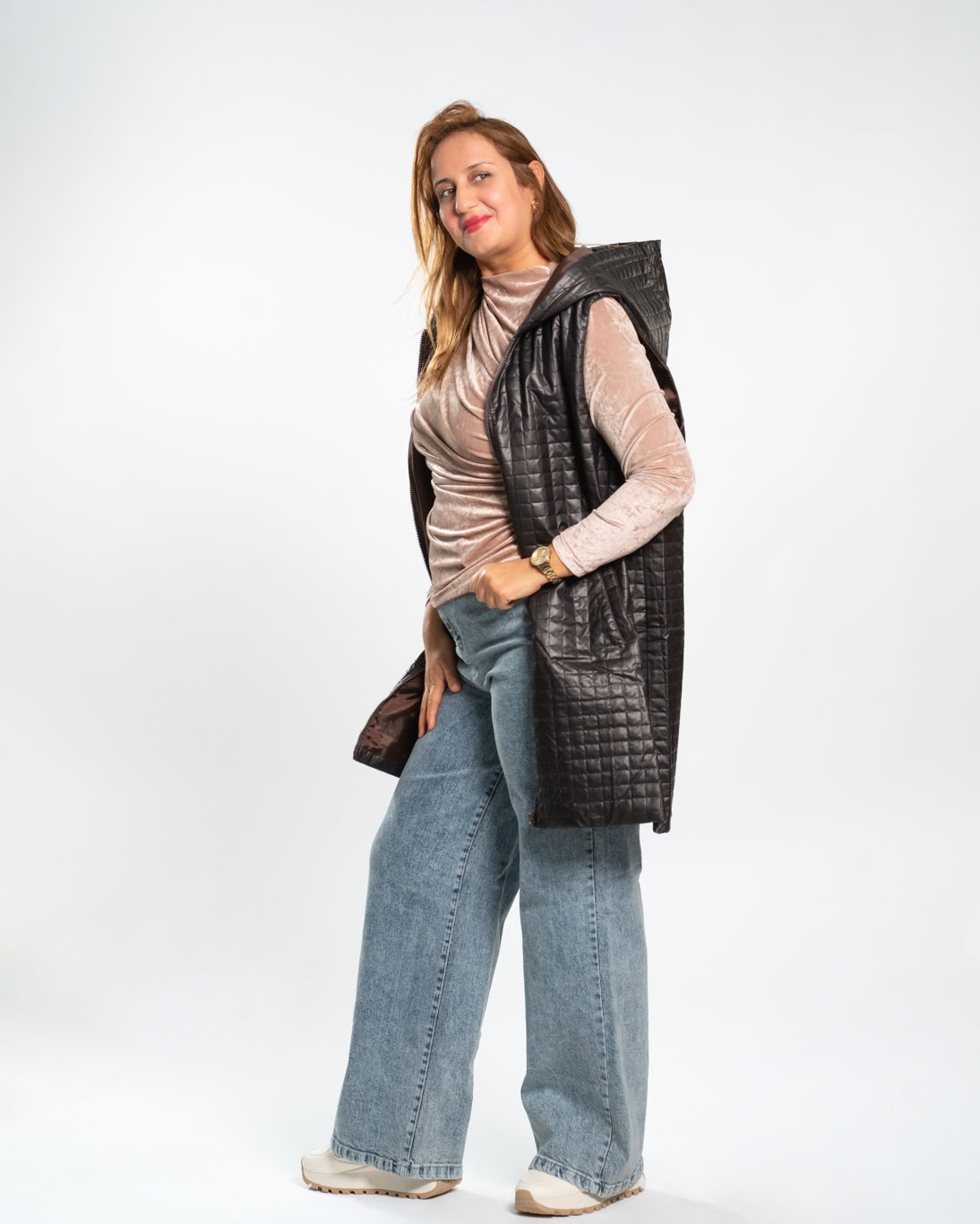 Le trench sans manche est une pièce polyvalente qui s’adapte facilement à divers styles. Que vous souhaitiez un look casual pour une journée décontractée ou un ensemble plus sophistiqué pour une sortie en soirée, il se marie parfaitement avec une variété de vêtements. Sa ceinture à la taille vous permet d’ajuster le vêtement à votre morphologie pour un effet cintré, tout en accentuant la silhouette.